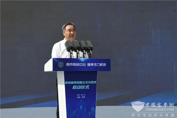 2021年5月1日上午9点,南京市首条氢能源公交示范线启动仪式在开沃新能源汽车集团隆重举行,南京市政府副秘书长陶磊,溧水区长张蕴,溧水区委常委、常务副区长邰伦浩以及开沃集团副董事长丁星胜、副总裁诸萍、副总裁江民等领导一同出席。此次氢能源公交示范线的开通将投放11辆NJL6106FCEV开沃氢燃料城市客车,并建设南京首个商业化加氢站,解决氢气储运和加注问题。