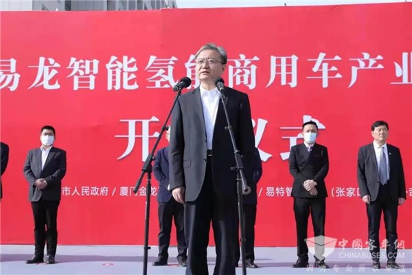 项目开工仪式上金龙客车党委书记、总经理刘志军表示:“此次金龙客车与易特智行合作共建张家口智能氢能商用车的研发和生产基地,将致力于打造成为集设计、研发、测试、制造为一体的高端智能制造项目,助力张家口打造成为世界知名的氢能技术研发中心和全球氢能技术创新高地,进一步推进张家口低碳交通和低碳能源产业发展。”