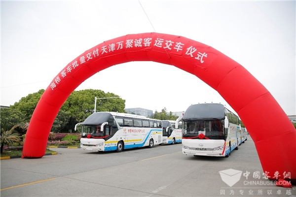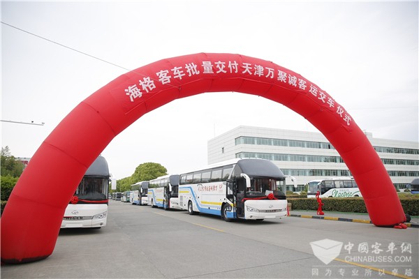 江南网页版2021年6月4日获悉,近日,15辆苏州金龙海格海威系列客车正式交付天津万聚诚客运有限公司(简称“天津万聚诚”),其中10辆是12米38座2+1商务座椅车型——KLQ6122B,主打高端旅游;其余5辆是13米56座车型——KLQ6132B,主打高运力。这批新车将为广大乘客带来更安全、更舒适、更环保的高品质旅游出行体验。此外,车辆的成功交付,不仅是苏州金龙海格长期深耕天津旅游客运市场的又一硕果,也再次证明了海格客车的品质实力深受用户与市场的高度认可。