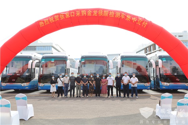 2021年8月11日,金龙客车在河北省张家口市交付10台核酸检测车,为当地全方位部署疫情防控工作提供强有力保障,与张家口市政府共同推动创建“氢”新文明之城,并在张家口多个领域提供美好出行方案。