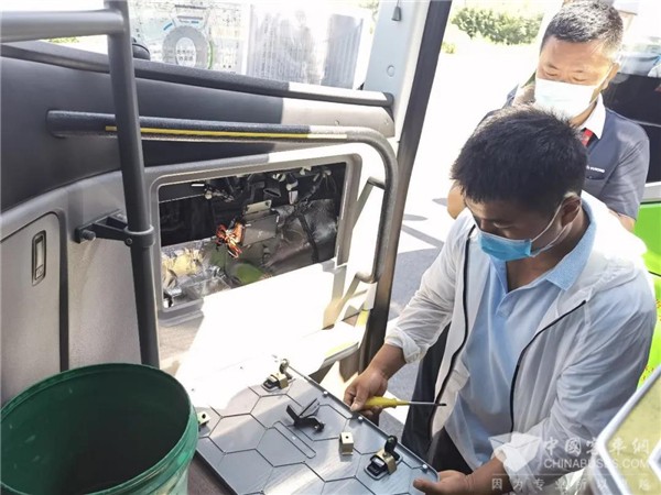 据组长张嵩山介绍,为提前做好全方位准备,宇通首批服务保障人员早在8月24日就已进场,并跟随全运会后勤组同吃同住,确保随时响应保障需求。而在服务现场,宇通保障团队更是每天在发车前和收车时对全车进行安全检查,其检查项目近20项。