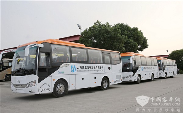 云南凡途汽车运输有限公司选的首批20台海格客车包括了3种车型, 11台8.9米的途悦、2台12米的海威和7台9座轻客,这3种车型将全部投入旅游客运中,但肩负着不同的使命——途悦作为主打车型将被投放在景区线路上,豪华大巴海威则用于“打造形象”、“开辟新市场”,体现公司实力。而轻客则针对于那些家庭团、朋友团,六七个、七八个人出行,这款车再合适不过。云南凡途汽车运输有限公司的全面布局体现了其对未来市场的看好,也展现出他们在抢抓机遇方面的深谋远虑。