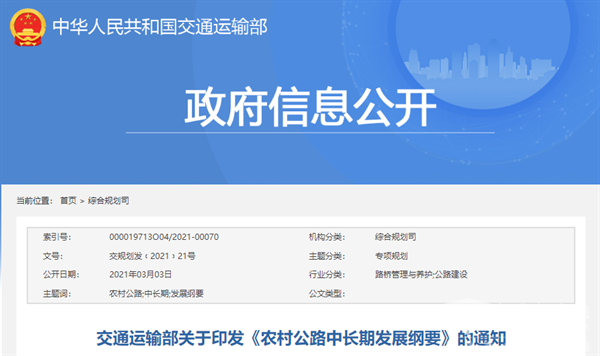 2021年2月21日,中央一号文件——《中共中央 国务院关于全面推进乡村振兴加快农业农村现代化的意见》后,其中强调要大力发展农村公路等基础设施,提高农村客运市场的质量。
