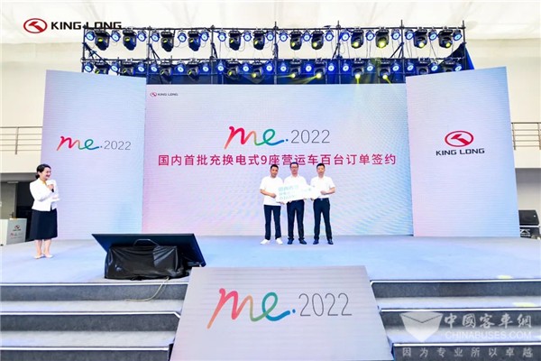 E代双骄产品项目负责人谢乐敏,主持“E代双骄”新产品发布和订单签约仪式。“E代双骄”新能源轻型客车搭载全新的纯电产品平台技术,在产品颜值、性能、质量、安全性、经济性、舒适度等各方面大幅度提升,对标各类应用场景,以站网(换电站布局)、客网(APP)、车网(车联网)三网互联互通为基础,以轨道交通为中心枢纽,打造“美好出行”生态圈。本次发布会上,“E代双骄”换电版骁龙与充电版骄龙,联袂上市,新产品发布现场同时搭建金龙客车与客户直通车,进行订单签约仪式,实现项目快速落地。