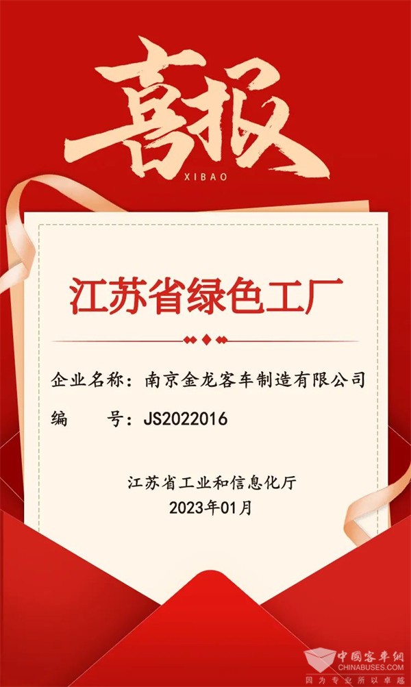喜报︱南京金龙经过系列程序层层审核荣获“2022年江苏省绿色工厂“