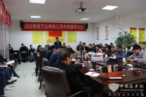 一元复始, 万象更新!2023年2月9日至11日, 奇瑞万达客车召开2023年度销售动员大会。会议以“新赛道、新体系、新市场、新产品”为主题, 奇瑞万达客车销售公司全体人员出席会议。