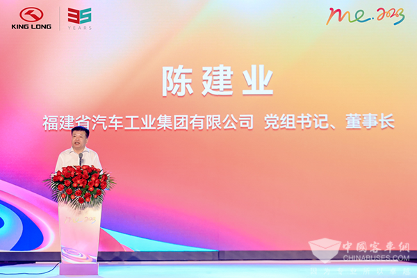 福汽集团党组书记、董事长陈建业在会上致辞。他指出,35年筚路蓝缕的探索,金龙汽车成为了国内外享有盛誉的客车行业领军企业,实现了中国汽车自主品牌的崛起。金龙汽车坚持科技创新发展战略,持续加大科技研发投入,不仅在绿色化、智能化、数字化转型中取得累累硕果,而且在智能网联、新能源三电、氢燃料、新材料等多个领域实现领跑。面向未来,金龙汽车将持续坚持以科技创新作为企业高质量发展的关键引擎,履行“建设美好出行社区”的使命,围绕“成为智慧交通的系统解决方案提供商”愿景稳步前行,携手合作伙伴高质量发展,共创美好出行。