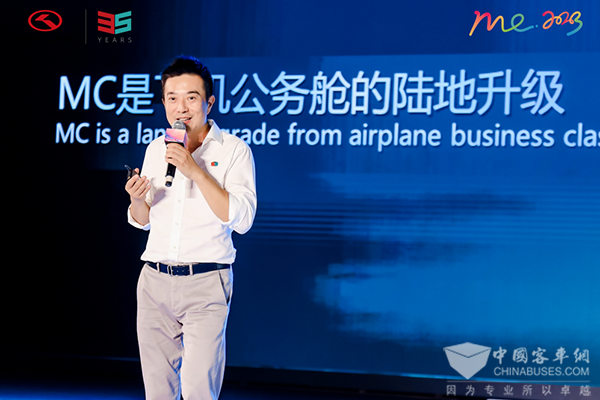 金龙副总经理、首席产品官苏亮带来了“陆地公务舱”——MC(Merry Combo),揭秘金龙全新的陆地超级出行方式。作为交通运输行业高质量发展的排头兵,金龙带来的MC不仅是12米的超级商务车,更是多场景的超级出行方式,它拥有全新的专属MCA架构平台,从底盘、电气和车身开始,采用9大前沿硬核技术,打造全场景沉浸式的超级出行生态圈,为用户提供前所未有的出行体验。