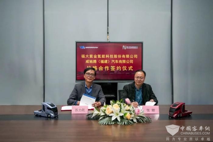 福大紫金以其在氨-氢能源技术领域的专业能力而闻名,提出了围绕可再生能源与氢能产业相结合的“零碳”循环技术路线。威驰腾则是一家专注于高端零排放商用车设计和制造的企业,致力于通过整合世界一流科技,打造符合客户运营场景的新一代氢动力及纯电零排放商用车。