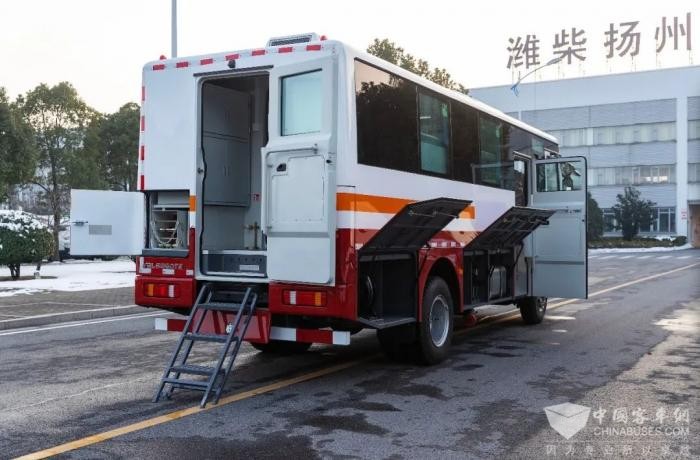 整车采用高强度钢骨架结构,结实耐用,确保人员安全。融入客车人性化设计理念,车内空间利用率高,驾乘体验感更优,可以根据客户需求,对舱内布局进行定制,更能满足测井多样化需求。