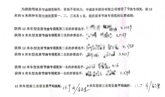 竞赛现场,中通客车以平稳操控、强劲动力、节油降耗等优势性能助力驾驶员斩获佳绩!其中,在油耗方面,9米车型前三名百公里平均油耗11.5L,12米车型前三名百公里平均油耗13.9L,这也是近年来中通客车加大科技研发,提升产品品质的有力见证!