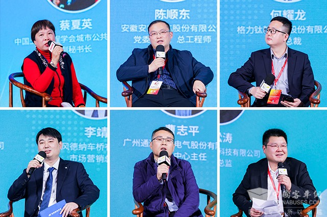 公交客车科技盘点论坛由中国土木工程学会城市公共交通分会副秘书长蔡夏英主持,安徽安凯汽车股份有限公司党委委员、总工程师陈顺东,格力钛新能源股份有限公司副总裁何耀龙,东风德纳车桥有限公司市场营销总监李靖,广州通达汽车电气股份有限公司信息中心主任曹志平、郑州迪耀交通科技有限公司销售总监齐松涛等嘉宾出席讨论,分享了他们对于公交客车科技创新的看法。