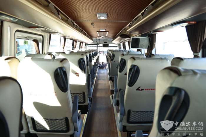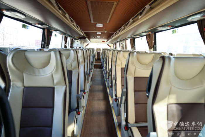车辆核载56人,内部空间布局合理,空间利用率高。BJ6132不仅具备iFoton智能车载管理系统的强大功能,还集成了导航、多媒体娱乐以及车辆安全管理监控等多种服务,最大化呈现客车的舒适实用。同时配备车载Wi-Fi、车载蓝牙以及前后排座椅USB充电接口等设施。多种人性化配置加持,使得乘客在旅途中可以更加便捷地使用移动设备,让旅程更加舒适愉快。
