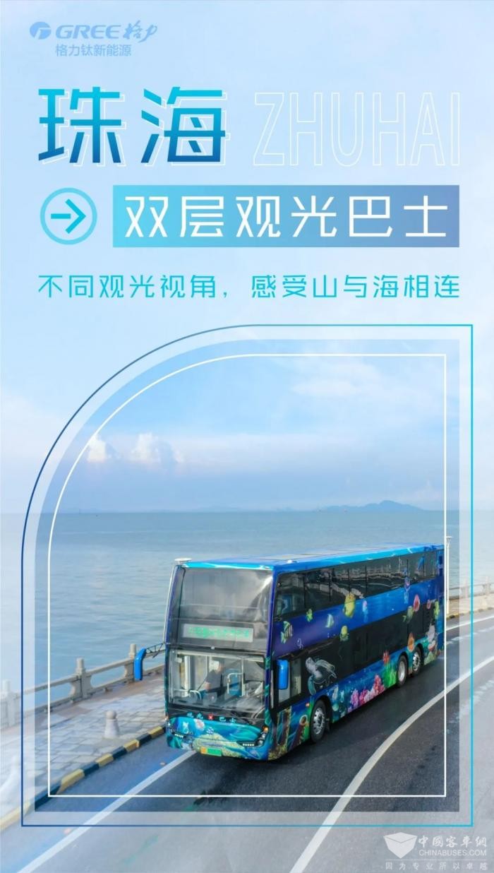 格力钛新能源双层巴士通过量身定制车身主题,突破传统旅游车辆单一的运载功能,深化交通运输与旅游融合发展,赋予城市观光新定义,成为珠海首条观光巴士专线。