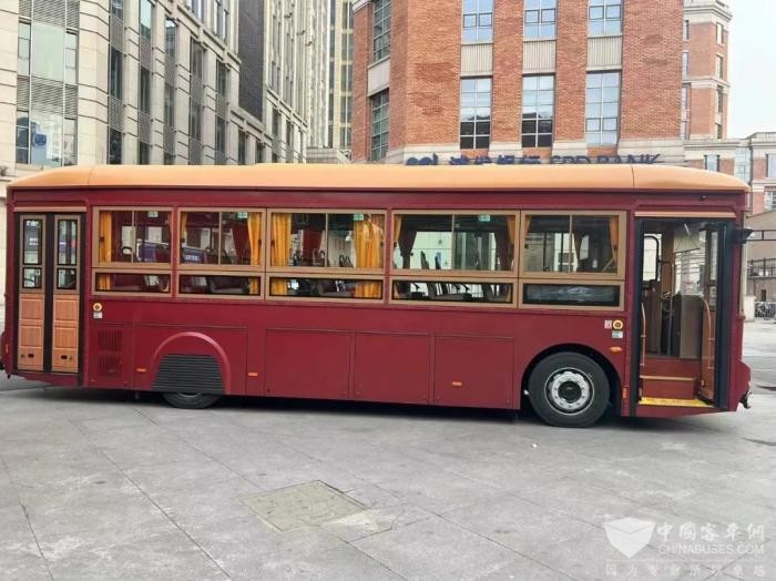 格力钛新能源仿古铛铛车,车身设计融合了中国传统元素和现代审美理念,复古韵味与现代潮流工艺相辅相成,与天津历史底蕴浑然一体。