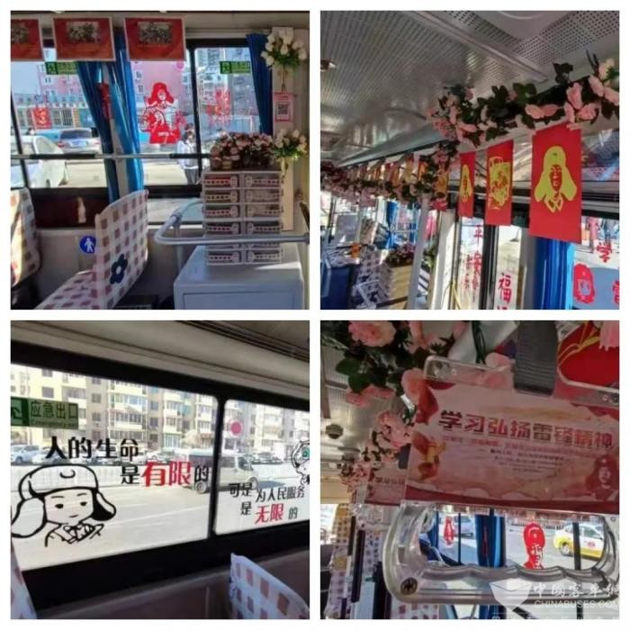 2024年3月初,线路上20多辆中车电动C10全部“换装”,无论是“弘扬雷锋精神,争当振兴先锋”等标语,还是雷锋卡通形象,在车内外随处可见。“看,‘雷锋’来了!”车辆平稳到站,大家总会被它显眼的涂装所吸引。驾驶员开门后,总会嘱咐一句:“大家上车注意安全啊,坐好扶稳才发车哦!”