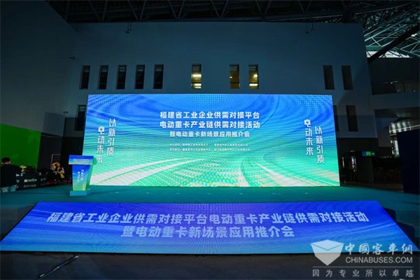 活动现场,金龙详细介绍了旗下电动重卡的应用场景案例。目前,金龙与合作伙伴携手打造的福建首个“批量新能源重卡场景化应用”项目已成功落地,该项目是金龙助力“电动福建”建设的具体举措,标志着金龙在积极探索新型工业化、发展新质生产力迈出了重要一步。