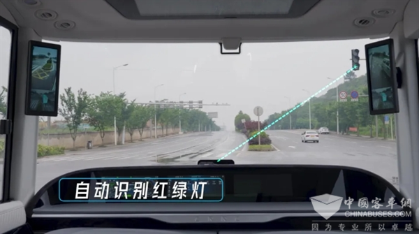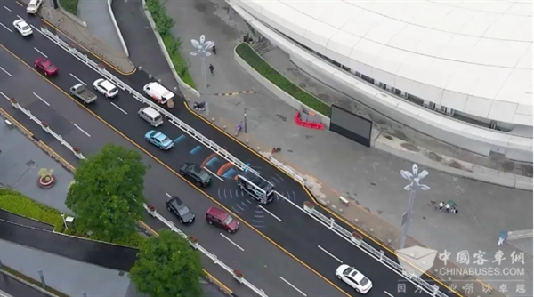 因此,在无人操作的情况下,这台微循环巴士自动调节着转向角度,识别周边情况,在道路上正常开行。
