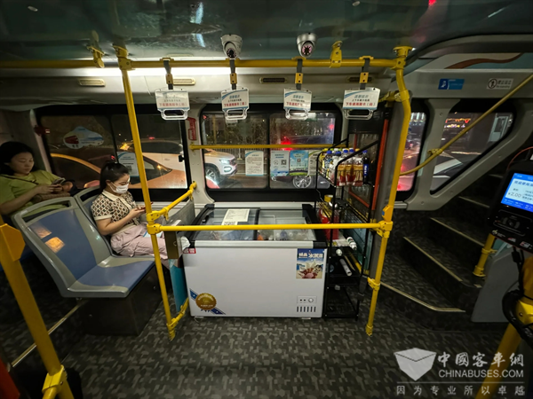 在穿越深圳东西的“长途公交”——M191路公交车上,车内还增配冰柜,只需扫码即可轻松购买,价格十分亲民,让全长60公里、两小时车程,不再枯燥,增加一份专属的凉意。