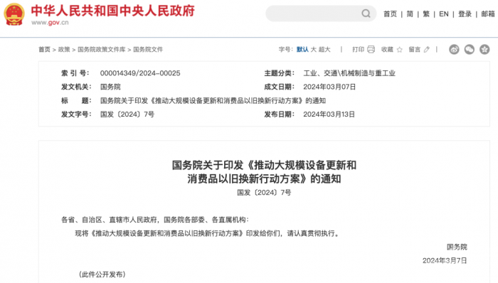 日前,国务院印发《推动大规模设备更新和消费品以旧换新行动方案》,其中“实施设备更新行动”中明确提出要支持交通运输设备和老旧农业机械更新。持续推进城市公交车电动化替代,支持老旧新能源公交车和动力电池更新换代。加快淘汰国三及以下排放标准营运类柴油货车等。