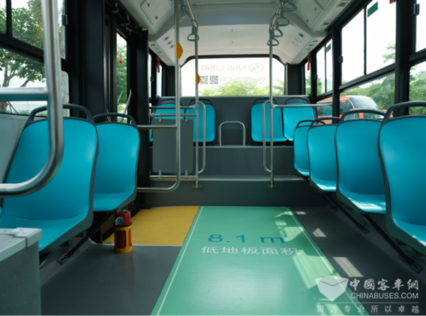 在空间上,M7的车长为7米,但其运载能力却可媲美8米级公交,最大载客量可达58人,这得益于其4050mm超长轴距和8.1㎡低地板区域面积。M7采用了低地板结构设计,整车站立区零台阶,不仅全面提升了上下车的安全性,给乘客提供更舒适的乘坐体验,还能提高运行效率,帮助客户实现更高的经济收益。