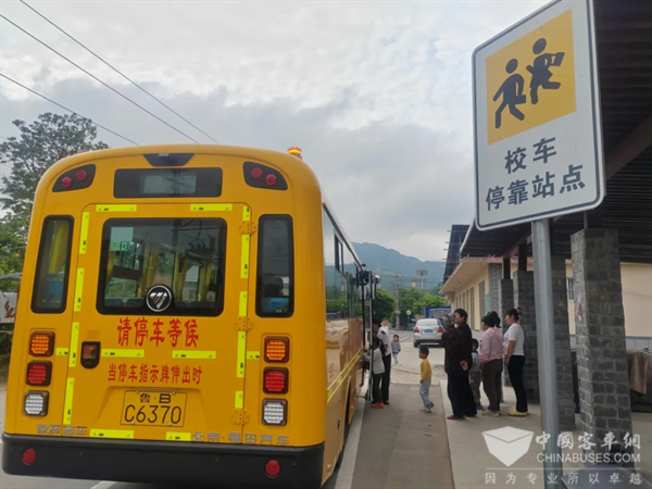 欧辉康馨校车搭载国六玉柴发动机,动力强劲,能很好地应对当地坡陡、路窄、弯多、弯急等村庄路况。车身采用醒目的明黄色外观,700MPa 高强度合金钢骨架+850mm档距完整封闭金刚环结构,搭配国内校车最大的逃生安全门,为学童构筑移动的“安全堡垒”。