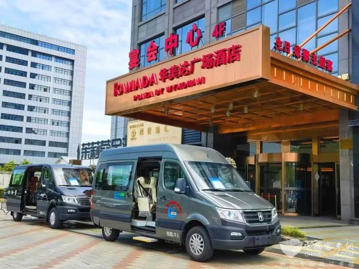 在会议结束后,与会代表在酒店停车场观摩了亚星客车现场展示的两款9座高端营运版商务车。