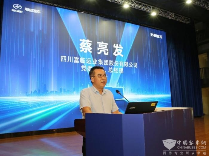 四川富临运业集团股份有限公司总经理蔡亮发在会上发言