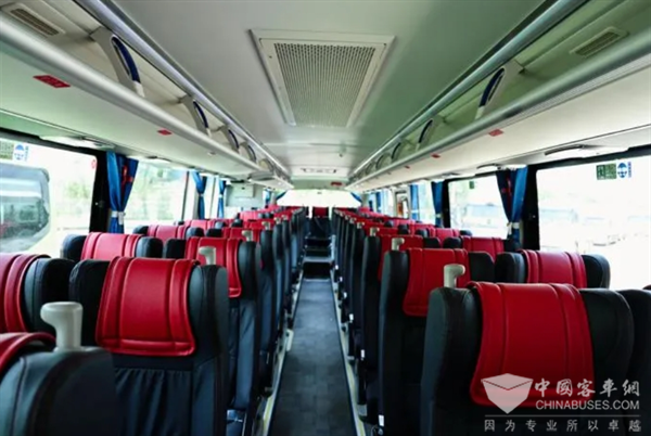 BJ6132不仅具备智能车载管理系统的强大功能,还集成了导航、多媒体娱乐以及车辆安全管理监控等多种服务,同时搭载车载蓝牙、USB充电接口等多种人性化配置,营造舒适体验感,让旅客出游更轻松更惬意。另外,车辆还采用倾斜式风挡+全承载车身设计,有效降低风阻及自重,多重降耗更节油,助力旅游客运企业降本增效。