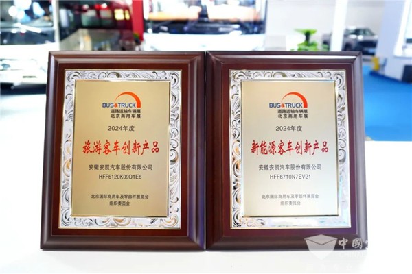 此次展会,安凯客车携全新升级款N8双前挡豪华客车、纯电动宝斯通N7重磅亮相,并分别荣获“旅游客车创新产品”奖和“新能源客车创新产品”奖。