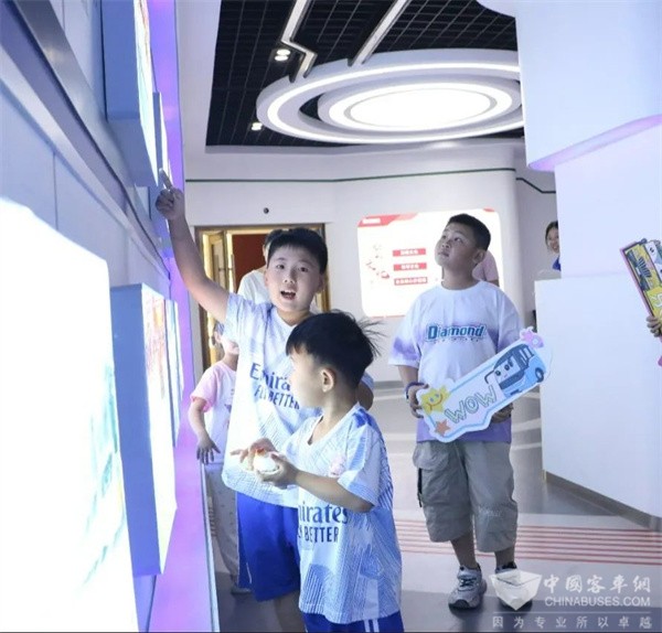 走进整齐排列的客车,孩子们对“大玩具”充满好奇与探索,领略着科技制造的实力,燃起了心中创新强国的梦想火花。