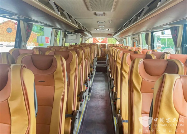 BJ6132采用全承载结构车身,大转角前桥+卓越的前后桥同步性调校,大幅提高车辆通过性。车辆内部空间宽敞,内饰美观时尚,座椅宽大舒适,配备车载Wi-Fi、车载蓝牙以及前后排座椅USB充电接口等,为旅客带来前所未有的舒适体验。同时,BJ6132搭载智能车载管理系统、AEBS、ESC、胎压检测等主动安全配置,为旅客安全保驾护航。此外,BJ6132倾斜式风挡+全承载车身设计,有效降低风阻及自重,使整车油耗降低5%,助力客运企业降本增效。