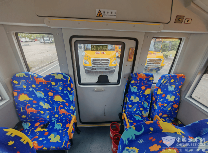 车内材料均采用环保材料,安全环保无异味,采用校车专用座椅阻燃面料,软包扶手,为孩子们提供安全、舒适的乘车环境。