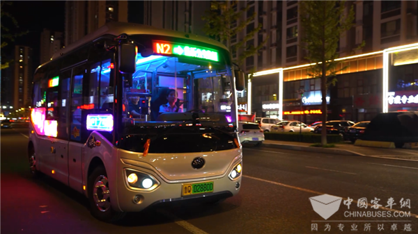 车身流光幻彩,摩登感十足的夜巴士不仅解决了市民夜间出行堵车、停车难、打车贵的难题,还串联起了市民夜购、夜食、夜游、夜娱等一系列夜间出行的热门场所,为市民夜生活的丰富提供了极大的帮助。