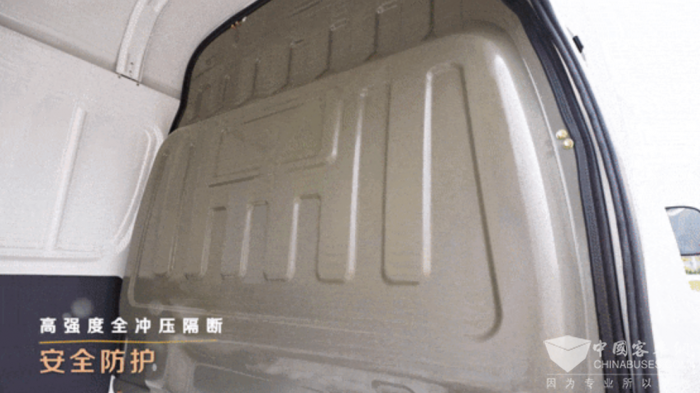 采用全冲压高强度车身,整车坚固可靠;搭载高强度全冲压隔断,行驶中安全防护更高。