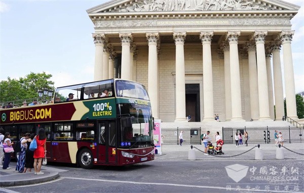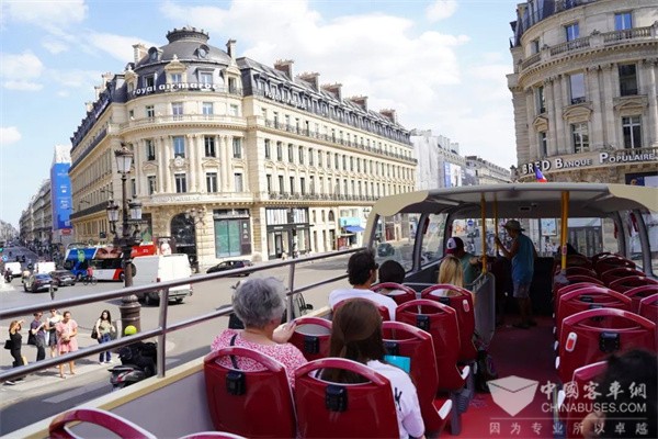 该车型半敞篷的酷炫设计及全景视野的震撼体验,与巴黎浪漫风情相得益彰。同时,纯电动零排放的出行方式,更是为城市增添一抹清新的“绿色”。不少乘客特意选择二层乘坐,轻松欣赏沿途景色景点,享受打卡拍照的乐趣。