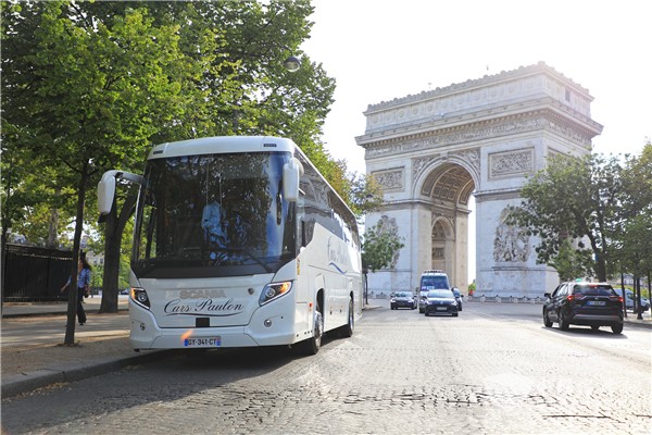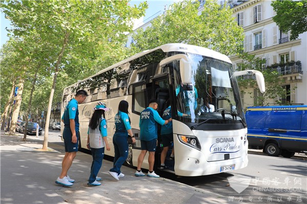 巴黎奥运村志愿者乘坐斯堪尼亚·海格统领客车