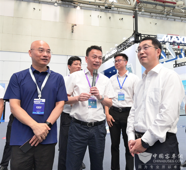苏州金龙凭借在新能源领域的卓越成就和显著贡献,在本次大会上荣获“苏州市新能源领军企业”称号。在大会企业展区,陈笃廉向吴庆文介绍了苏州金龙新能源商用车系列产品的创新成果。吴庆文期望苏州金龙加速推动新能源渣土车、环卫车等产品在苏州本地的规模化应用,不断提升苏州绿色交通装备水平。