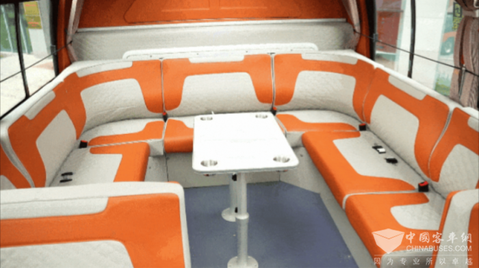 整车内饰橙白相间,温馨明亮