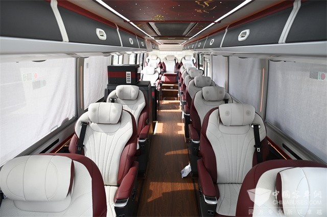 海格V12商旅版的尊贵与舒适,不仅是拥有传统色彩搭配、中式美学内饰,营造温馨雅致的乘车氛围,还配备了宽敞舒适的定制航空座椅、高浓度弥散式氧吧、多功能人性化细节设置,更是客车行业首家搭载华为XSCENE光场屏引擎技术。