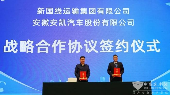 大会上,安凯客车与新国线运输集团有限公司签订了战略合作协议,进一步深耕旅客联程运输领域的探索,以创新运游融合服务新模式,打开市场经营新思路,共谋行业高质量发展与产业升级新策略。