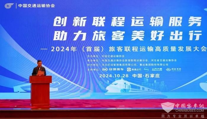 开启旅客联程运输新征程,服务人民群众更美好出行。2024年10月28日,由中国交通运输协会主办,中国交通运输协会旅客联程运输分会、河北省交通运输协会承办的2024年(首届)旅客联程运输高质量发展大会在河北石家庄盛大启幕。此次大会汇聚了来自交通运输部运输服务司、国家铁路局运输监督管理司、中国民用航空局运输司等政府部门的相关领导,以及铁路、公路、水运、民航等领域的行业专家、企业代表等240余名嘉宾,共同见证了旅客联程运输新时代的开启。