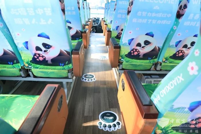 基于苏州金龙新V系客车定制打造,成都飞翔车队2024年全新上线“熊猫巴士”,突出大熊猫萌力亮点,并以定制游、真纯玩的熊猫式宠粉模式,解锁了旅游客运“流量密码”。