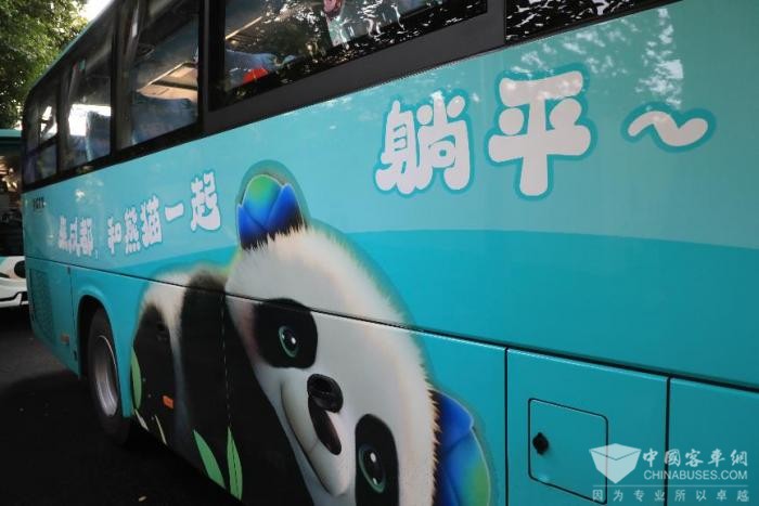 成都飞翔车队负责人刘强表示:“就像我们车身文案:‘来成都,和熊猫一起躺平’‘来成都,像宠熊猫一样宠你’,这批30座9米苏州金龙新V系熊猫巴士,主打更高端、更安逸、更巴适,全面提高品质小团游服务标准。”