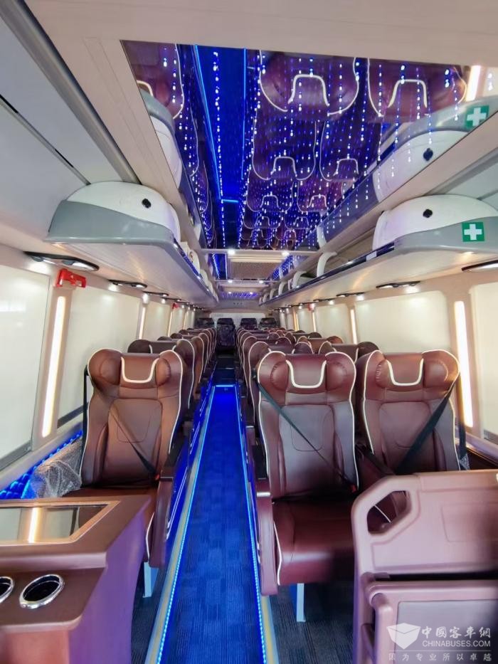 11.6米车长的金旅纯电客车,座椅设计为39座2+1式布局,乘坐空间相比传统车型有明显提升。同时,座椅符合人体工程学设计,更贴合人体曲线,纯电车型更好的静谧性,让舒适度全面提升。“2+1车型在运营中效果非常好,豪华大巴本身就是一个极具特色的卖点,成为旅游项目吸引力的一部分,游客愿意付出一部分溢价来获得更好的旅途享受,在这个过程中我们公司、旅行社、游客是多方受益。”姜振羽说。