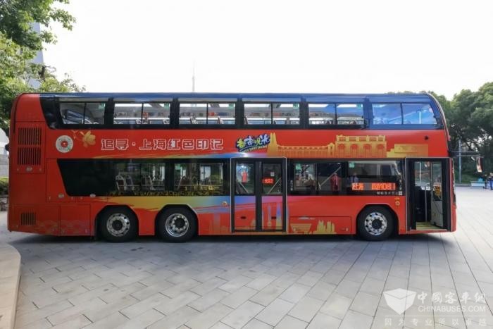 作为探寻上海“红色基因”的重要载体,安凯双层巴士时尚大气、挺拔饱满的“中国红”车身让人耳目一新,车身上“初心之地 ·光荣之城”和“新时代·新上海”字样引人注目,特别是其中共一大纪念馆站、中共二大会址纪念馆站等标志性建筑设计的涂装车身,让市民“沉浸式”体验党史学习氛围。