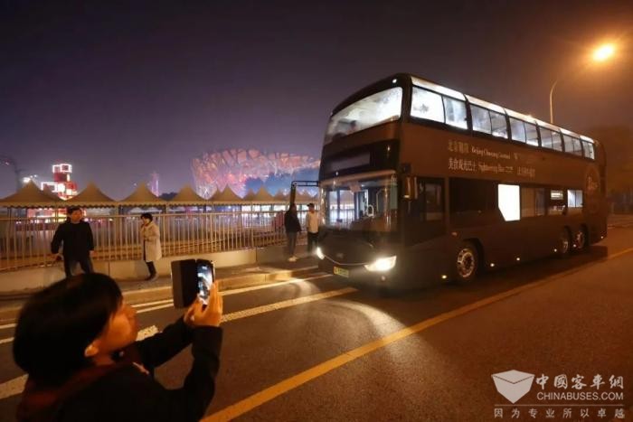 北京首辆 安凯全景天窗美食观光巴士亮相试运营