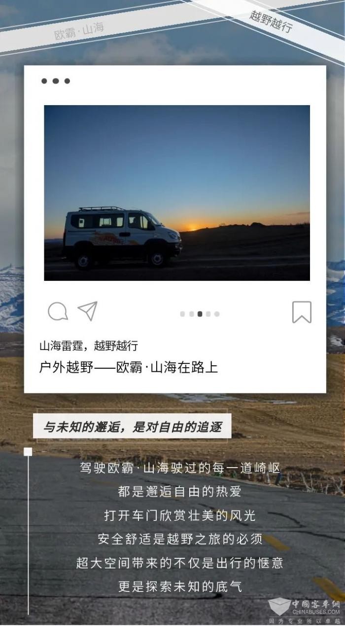 正如「中国自驾探险第一人」何旭东所说:“欧霸·山海带给我纯粹、野性、安全的越野快感,期待更多人与依维柯一起收获更精彩的人生。”