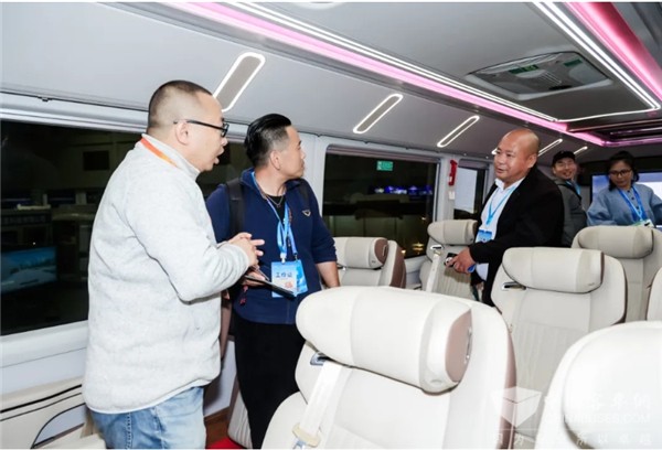本次亮相的金龙Merry Combo陆地航母内饰布局采用模块化设计,配备高端航空座椅、备餐间、影音系统、无线Wi-Fi等“头等舱”设施服务,为文旅出行提供满满的情绪价值和尊享体验。而金龙C型房车则以其宽敞舒适的内部空间、豪华配置的生活设施,满足了追求高品质旅行体验的需求。两款车型,都凝聚了金龙对美好出行生活的深刻理解与不懈追求。