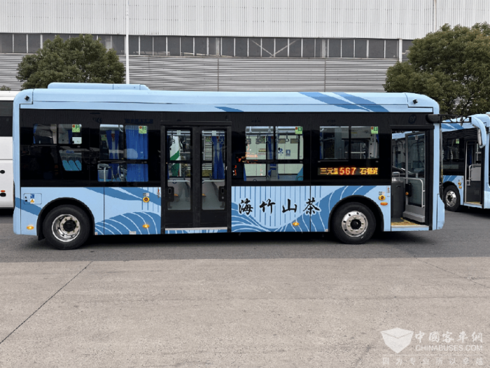 JS6869GHBEV整备质量为8400kg,后悬为1060mm,总长为8640mm;JS6108GHBEV整备质量为11650kg,后悬为2460mm,总长为10500mm。即JS6869GHBEV同比JS6108GHBEV车辆自重下降了27%,后悬缩短了56%,总长缩短了18%。车辆电耗显著降低,各总成的使用寿命加长。车长和后悬的缩短,不仅提升了车辆在高峰时段的通过性能,还为行车和停车提供了更多的空间。